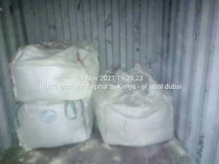 The shipment consisted of 10 containers (20-foot) each fully loaded with granular sulphur. Each container carried roughly 25 to 27 metric tons, translating to an approximate total of 250–270 metric tons of granular sulphur. The sulphur was packed in 1000 kg jumbo bags, which were securely placed on pallets to avoid movement during transport.