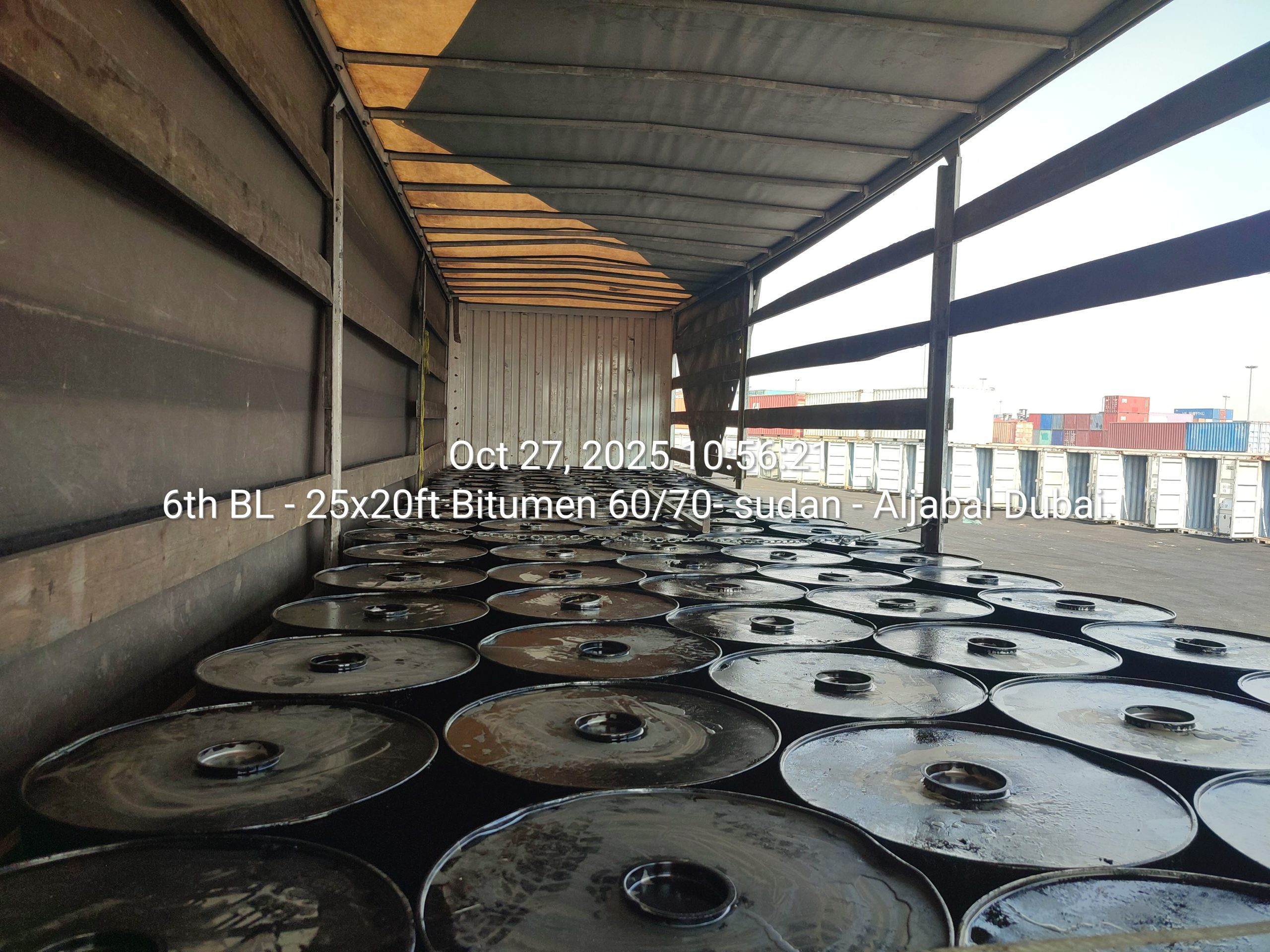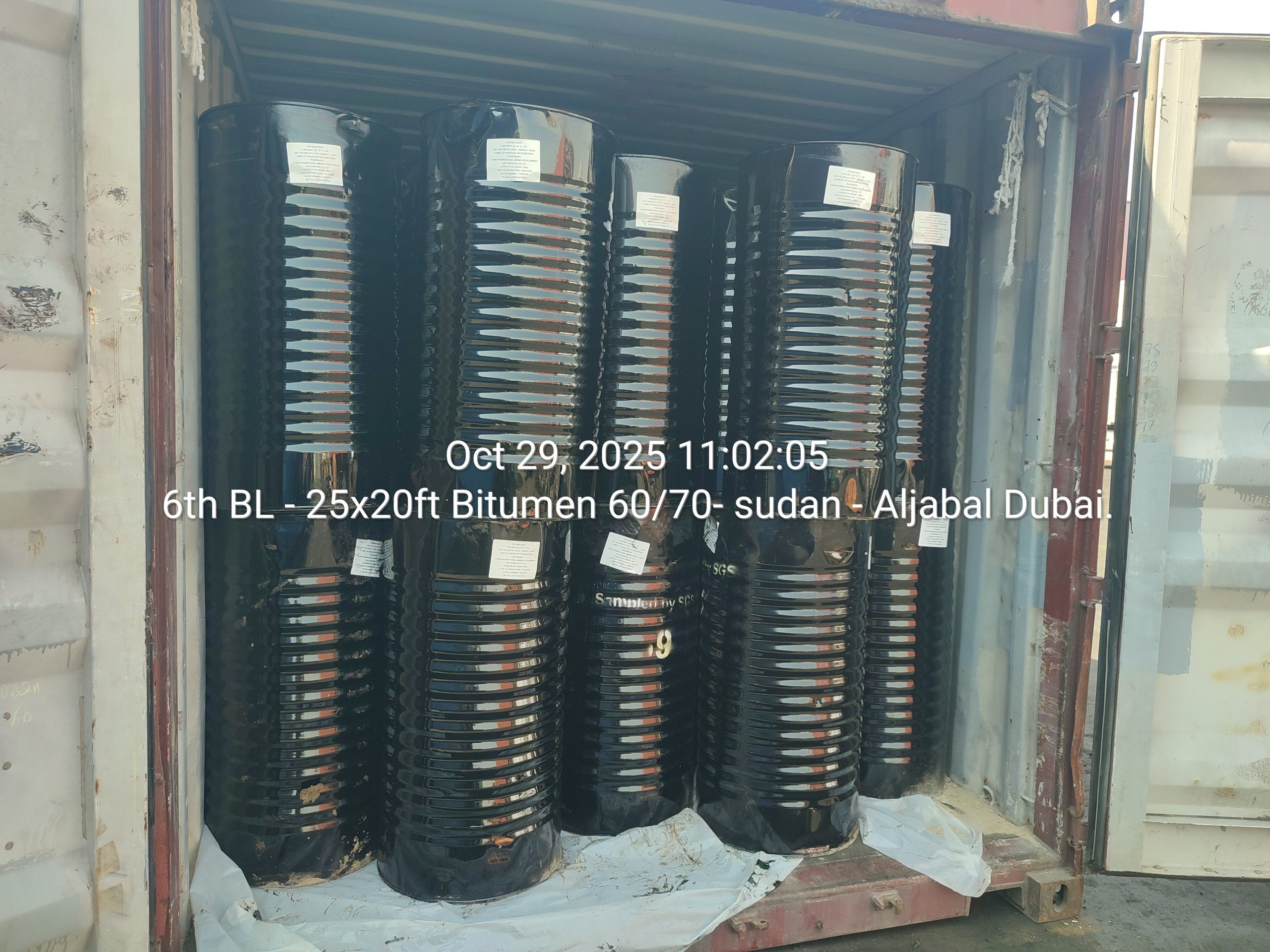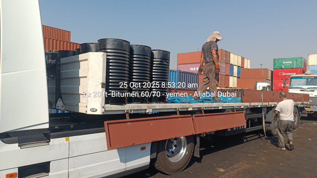 In October 2025, Aljabal Holding successfully completed the sixth batch export shipment of 25×20 ft containers of Bitumen 60/70 to Sudan, further reinforcing its consistent commitment to high-quality petroleum product exports and enhancing infrastructural development across the African region. This large-scale shipment represents an ongoing supply partnership between Aljabal Holding and strategic stakeholders in Sudan’s road construction and infrastructure sectors.