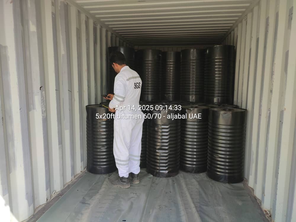 Aljabal Holding’s April 2025 shipment consists of 5 full 20-foot containers, each meticulously packed with Bitumen 60/70 in new steel drums. Each container holds approximately 110 to 120 drums, totaling over 100 metric tons of road-grade bitumen.