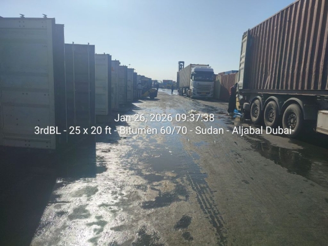 In January 2026, AlJabal Holding arranged the shipment of 25×20 ft containers of bitumen 60/70 destined for Port Sudan. To ensure flexibility and reduce congestion, the shipment was strategically split into phases, each involving smaller batches of containers shipped in regular intervals.