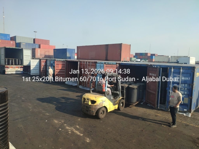This shipment not only benefits Sudan but also supports the exporting country’s economy. With bitumen prices ranging between $400–$500 per ton (depending on global oil prices), each container of bitumen generates significant foreign currency income.