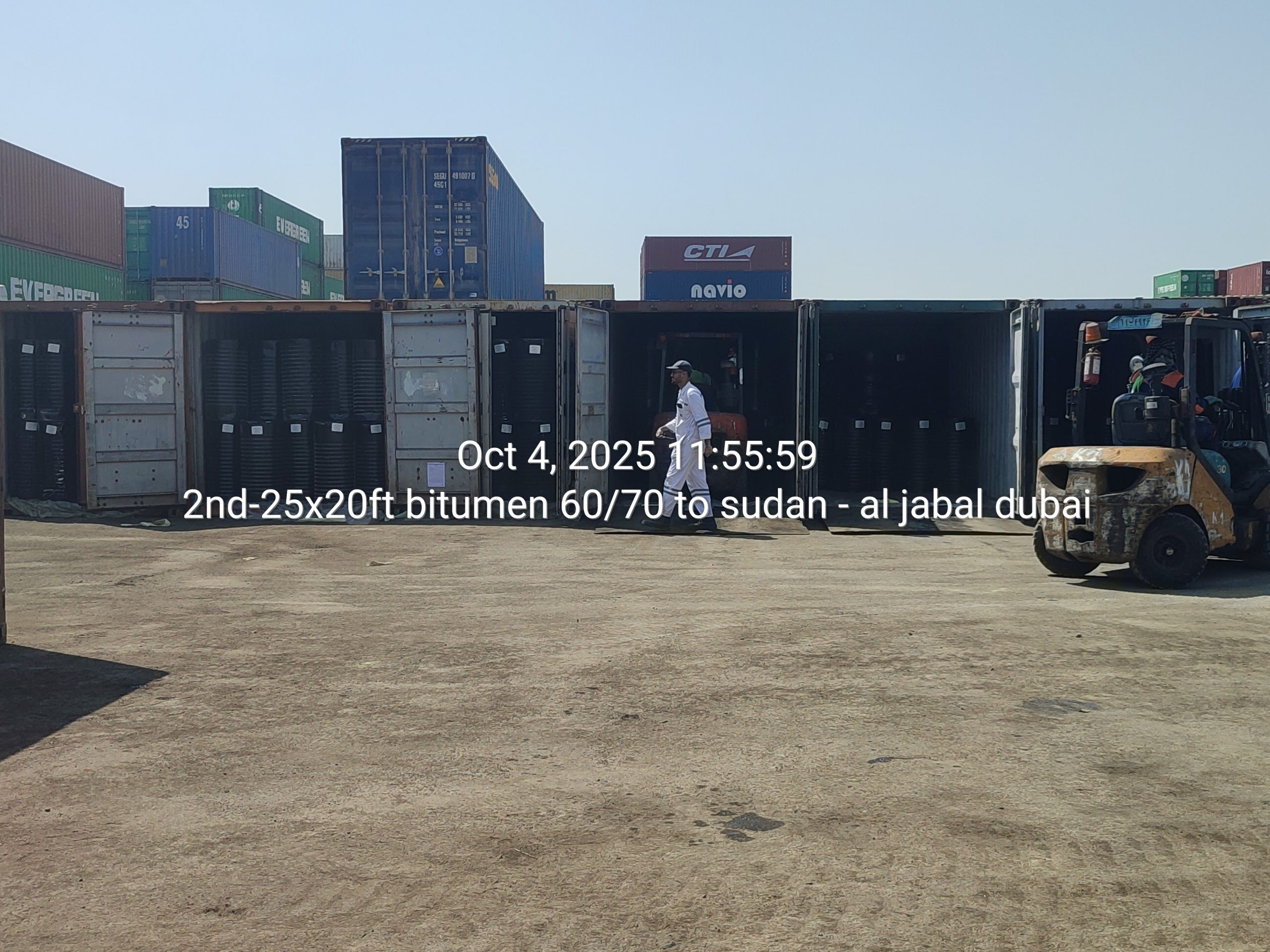 Aljabal Holding, a prominent name in the global bitumen trade, has successfully completed its second shipment of 25×20 ft containers of Bitumen 60/70 to Sudan in October 2025. This move further strengthens its position in the East African market, particularly in Sudan’s booming infrastructure sector. Following a well-received initial shipment earlier in the year, this latest delivery marks a significant milestone in the company’s regional expansion strategy.
