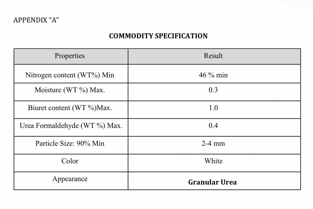 | Nitrogen Content | wt% | ISO 5315 | 46.3min |
